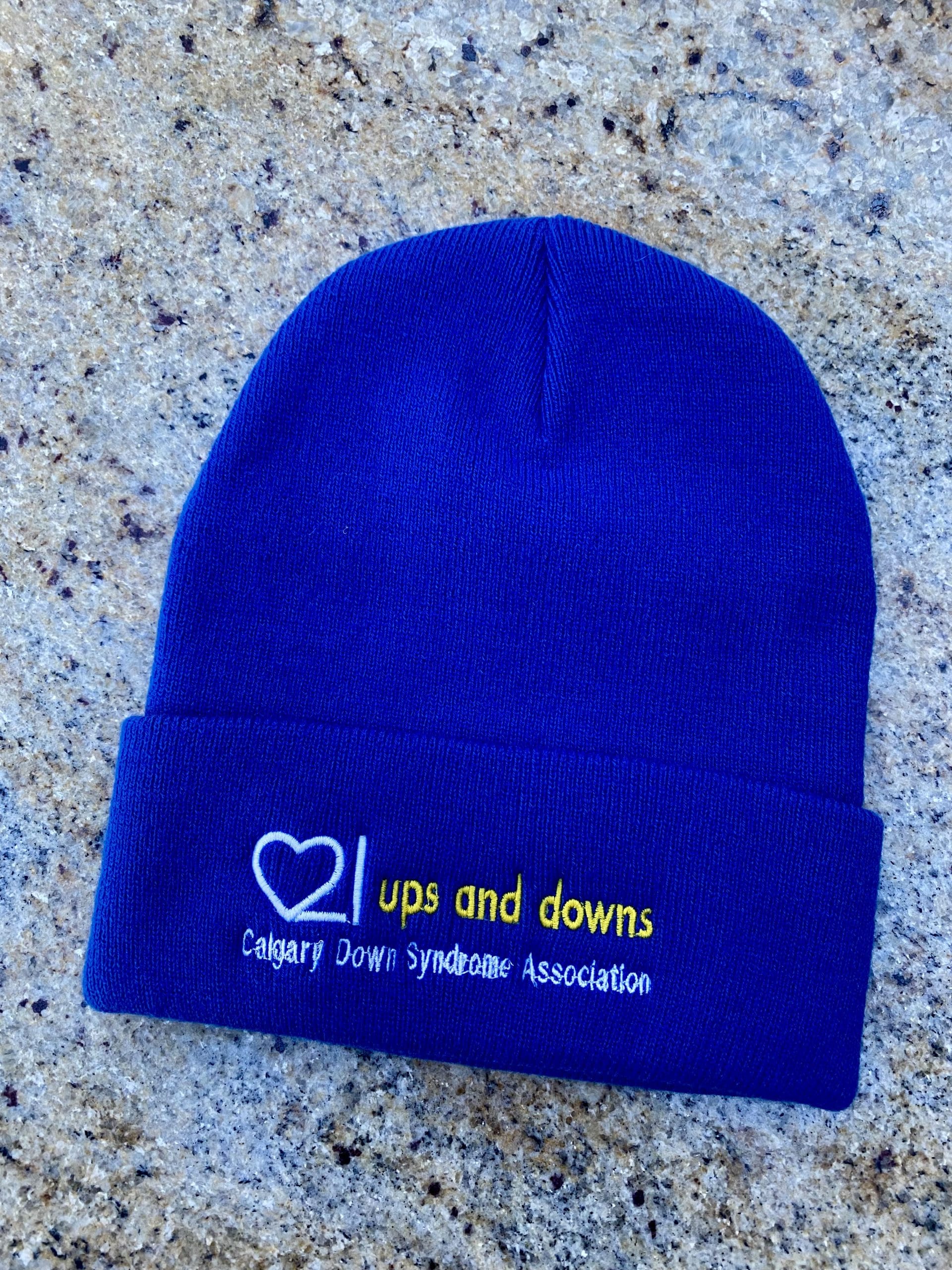 Introducing Ups and Downs toques. Blue knit with Ups and Downs crest. 100% acrylic. Available with or without a cuff.